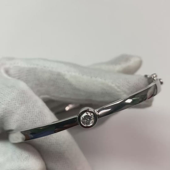 0.50 Carats Round Solitaire Natural Earth Mined Diamond Bangle White Gold 14K