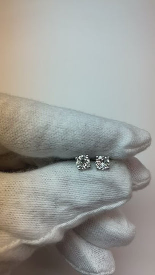Stone Details : There is one round diamond approx. 0.40 carats (approx. dia. 4.6 mm) in each earring. Natural earth mined diamonds.