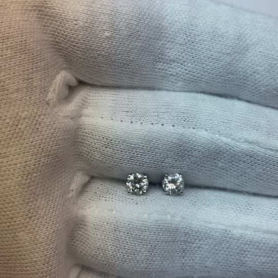 Stone Details : There is one round diamond approx. 0.45 carats (approx. dia. 4.8 mm) in each earring. Natural earth mined diamonds.