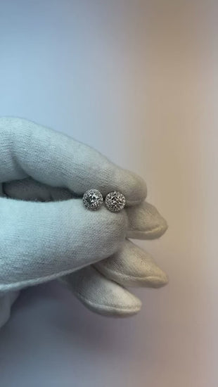 1.35 Ct Round Halo Natural Earth Mined Diamond Stud Earring Lady Jewelry