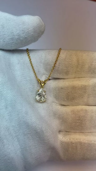 1.5 Carat Pear Natural Earth Mined Diamond Solitaire Pendant Necklace Yellow Gold
