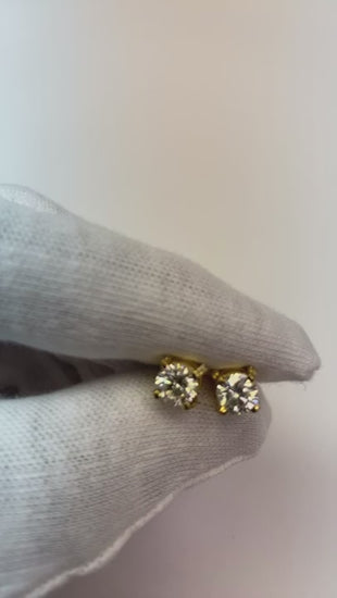 1.50 Carats Prong Set Natural Earth Mined Diamond Stud Earring Yellow Gold 14K