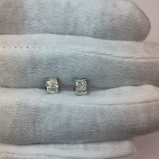 1.5 Carats Radiant Cut Natural Earth Mined Diamond Stud Solitaire Earring White Gold 14K