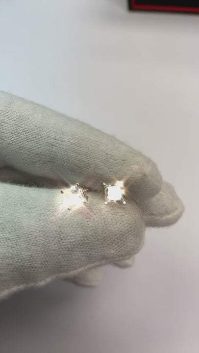1.5 Ct Princess Cut Natural Earth Mined Diamond Stud Earring 14K White Gold