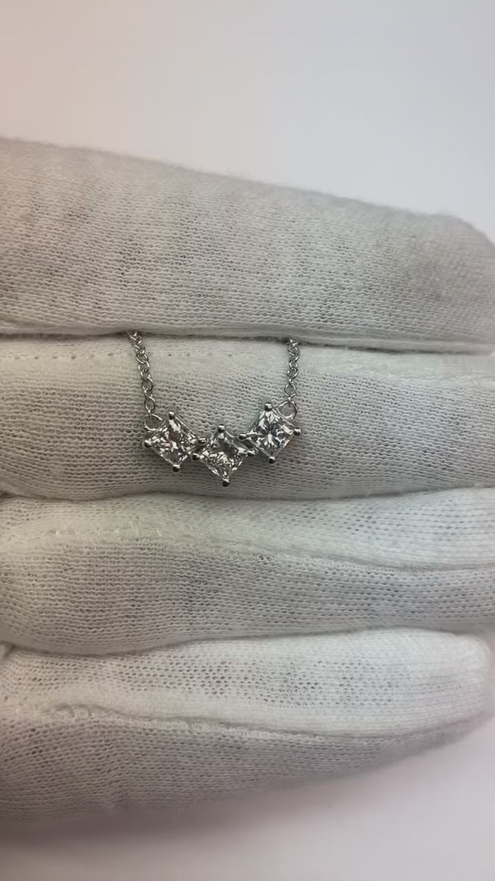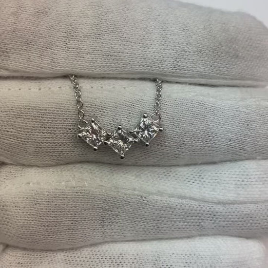 1.5 Ct Prong Set Princess Natural Earth Mined Diamond Three Stone Necklace Pendant