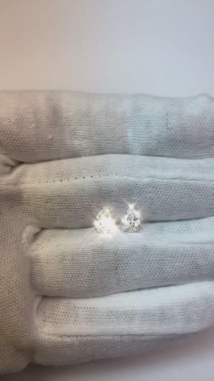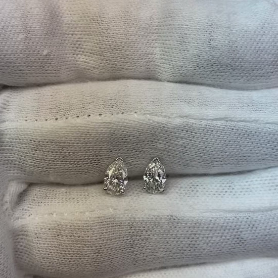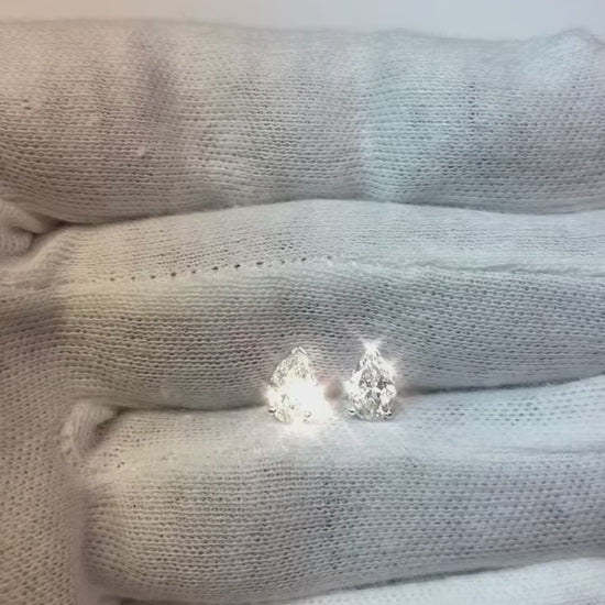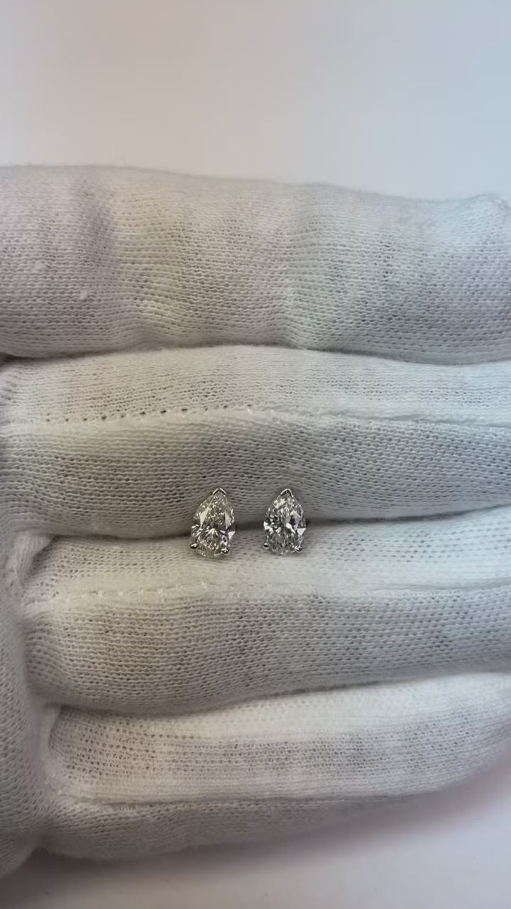 1.5 Ct Three Prong Setting Pear Cut Natural Earth Mined Diamond Stud Earring
