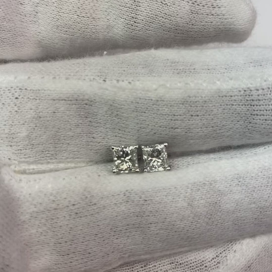 1.50 Carats Princess Natural Earth Mined Diamond Stud Earrings White Gold 14K Studs