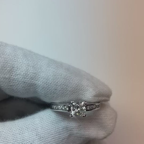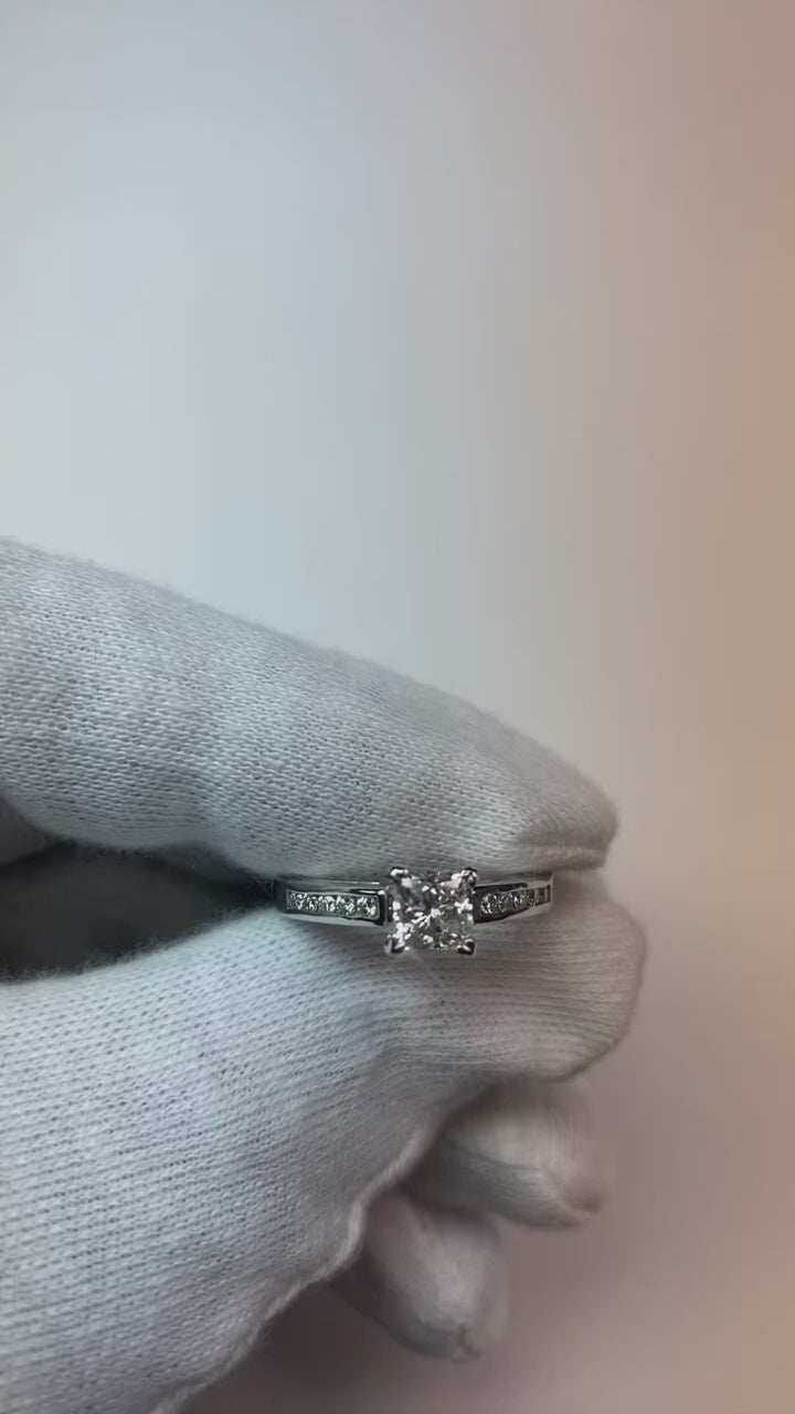 Stone Specifications : There is one princess diamond of approx. 1 carat (Approx. Size 5.4 x 5.4 mm) and approx. 0.50 carats of round diamonds on the sides. Natural earth mined diamonds.