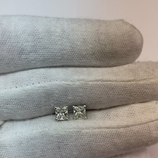 1.70 Ct Princess Solitaire Natural Earth Mined Diamond Stud Earring 14K White Gold