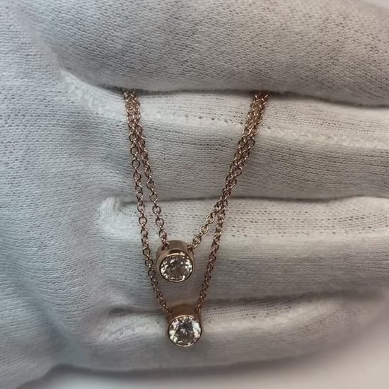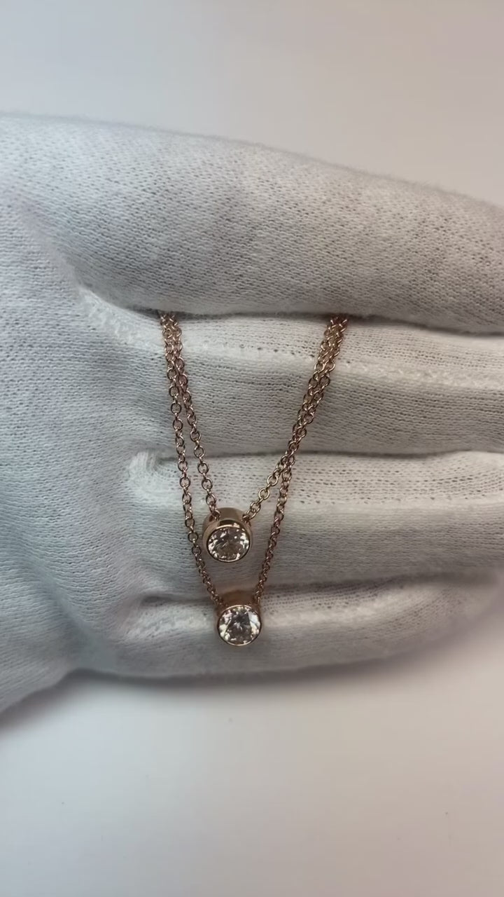 1.75 Carat Pink Gold Rose Gold Double Necklace Natural Diamond Diamonds Yard