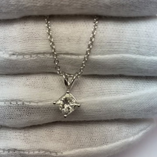 1 Carat Prong Set Princess Natural Earth Mined Diamond Necklace Pendant