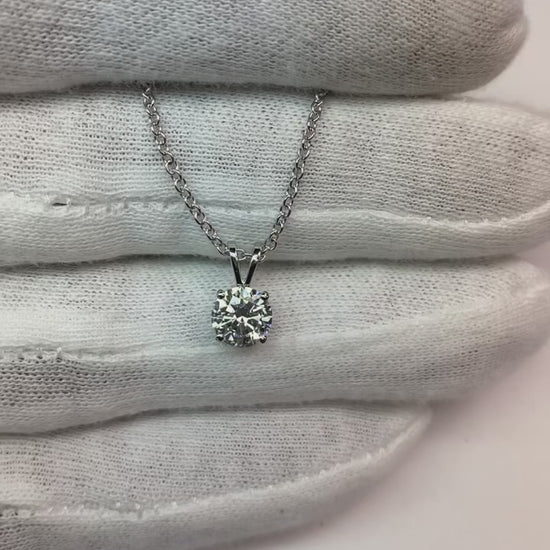 1 Carat Round Solitaire Natural Earth Mined Diamond Necklace Pendant White Gold 14K