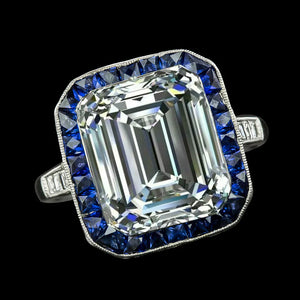 Stone Details : There is one emerald cut diamond approx. 7.35 carats (Approx. Size. 13 x 12 mm) and approx. 1.75 carats of stones on the sides. Natural earth mined stones.