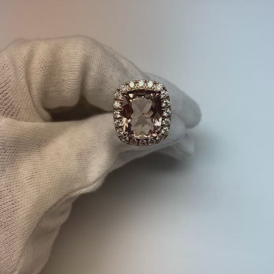 14K Rose Gold Morganite And Natural Earth Mined Diamond 10.25 Ct Ring New