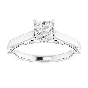 14K White Gold Cushion Old Cut Natural Earth Mined Diamond Ring Prong Set 6 Carats