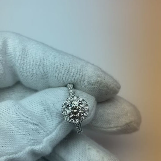 2.00 Carats Round Antique Style Halo Natural Earth Mined Diamonds Ring White Gold 14K