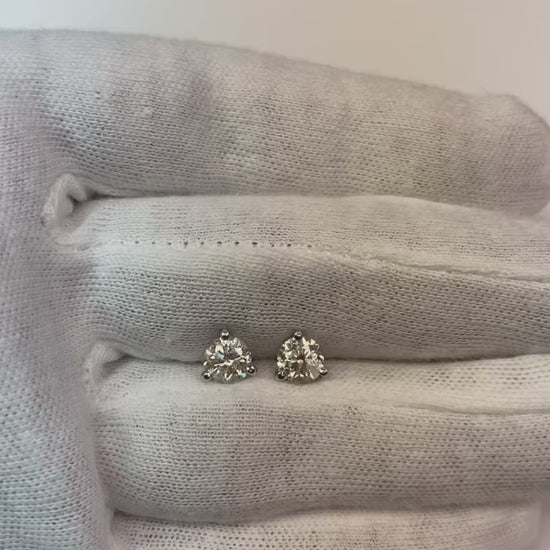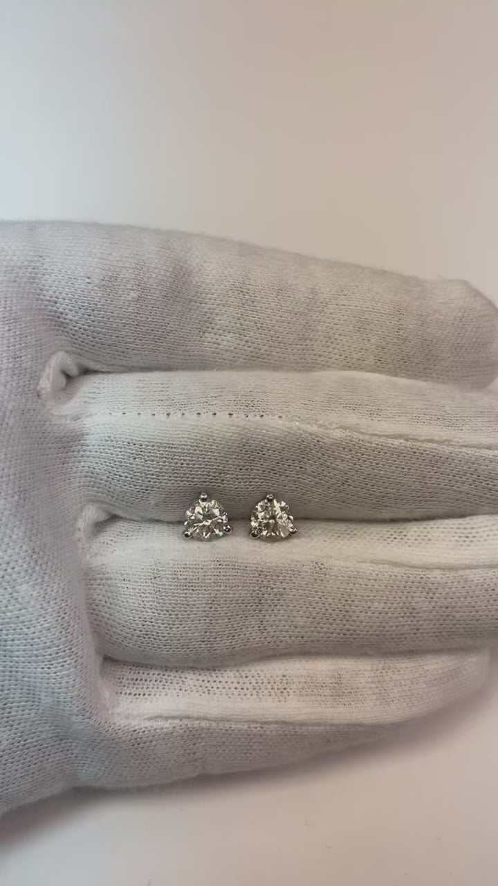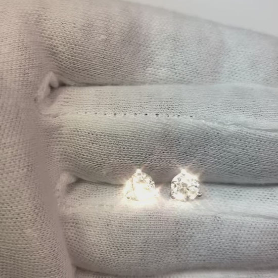 Three Prong Set Genuine Natural Earth Mined Diamond Lady Studs Earrings 2.0 Carat White Gold 14K