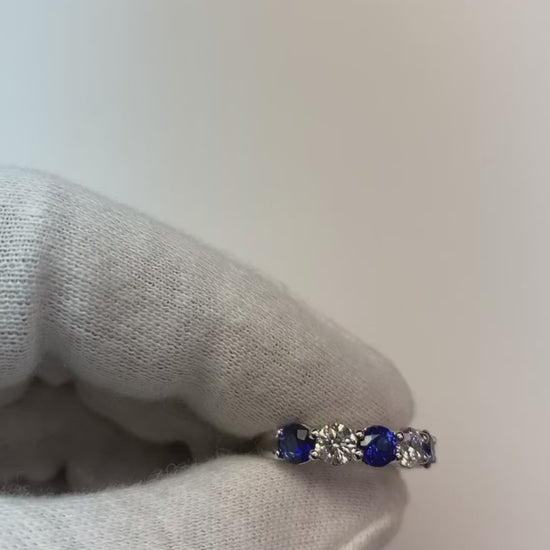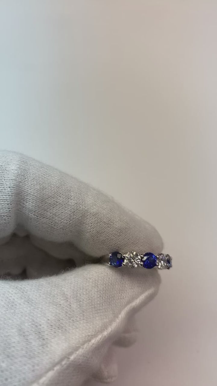 Stone Specifications: There are four blue sapphires in the center of approx. 0.35 carats each & three round diamonds approx. 0.35 carats each on the side. Natural earth mined stones.