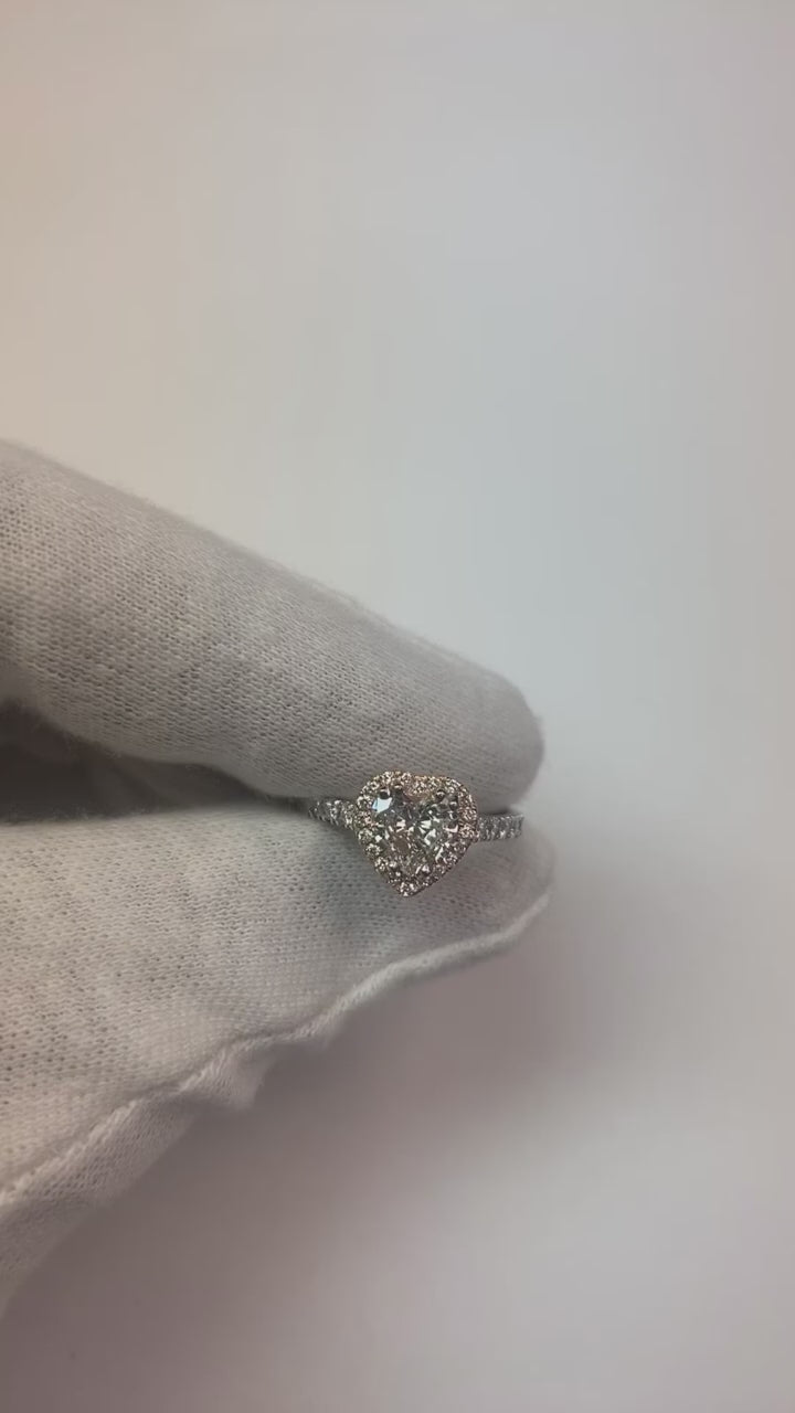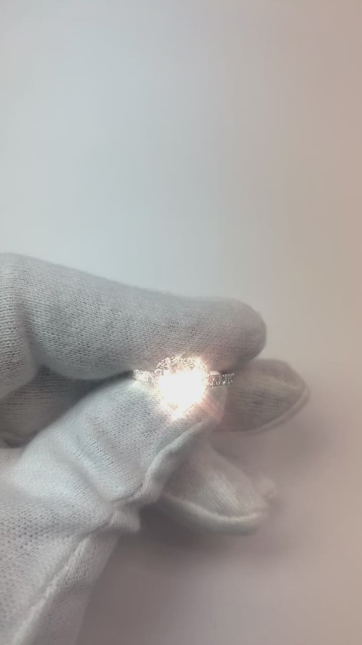 Stone Specifications : There is one center heart cut diamond approx. 1.50 carats and approx. 1 carat of smaller diamonds on the sides. Natural earth mined diamonds.