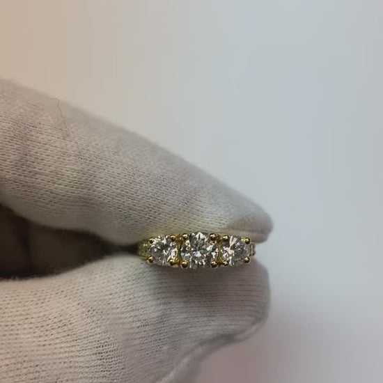 Stone Specifications : There is one diamond in the center of approx. 0.75 carats, two diamonds on the sides of approx. 0.50 carats each and approx. 1.00 carats of smaller diamonds on the shank. Natural earth mined diamonds.
