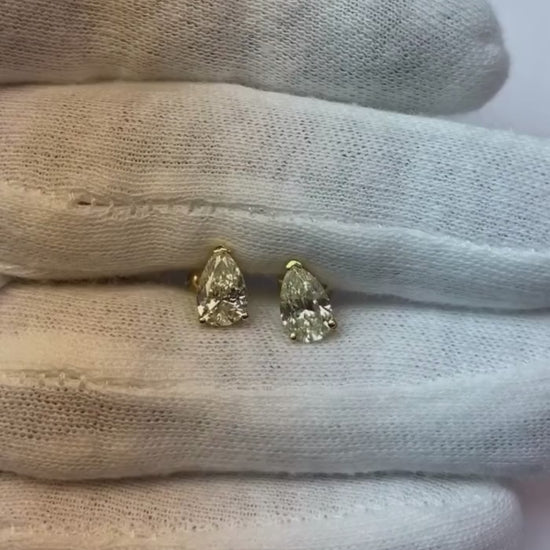 2 Carat Pear Cut Natural Earth Mined Diamond Stud Earrings Yellow Gold Pushback