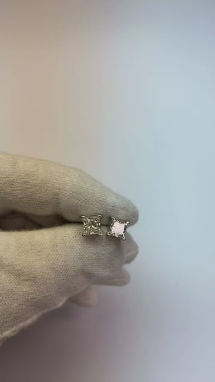 2 Carat Princess Natural Earth Mined Diamond Stud Earring Gold Solid White Prong Set