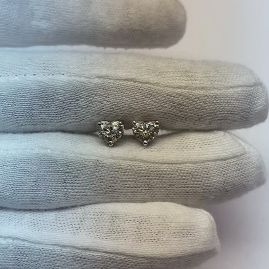 Stone Specifications: There is one heart diamond approx. 1 carat (Approx. Size 6.3x6.3 mm) in each earring. Natural earth mined diamonds.