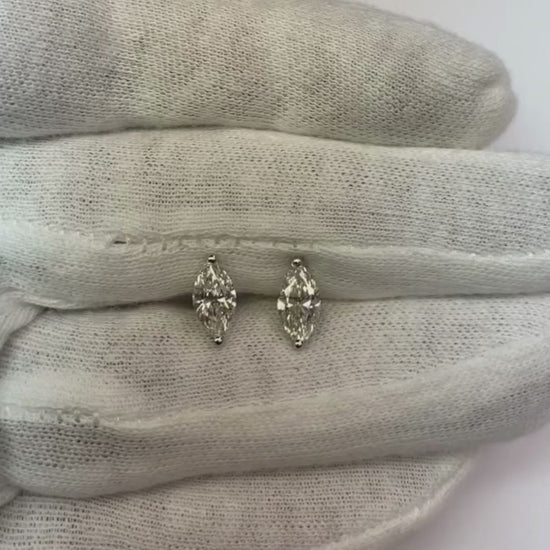 2 Carats Marquise Cut Natural Earth Mined Diamond Stud Earring Solid White Gold