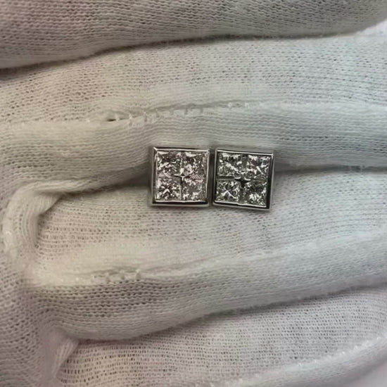 2 Ct Bezel Set Princess Cut Natural Earth Mined Diamond Stud Earring 14K White Gold