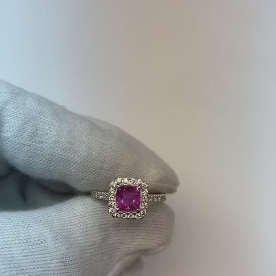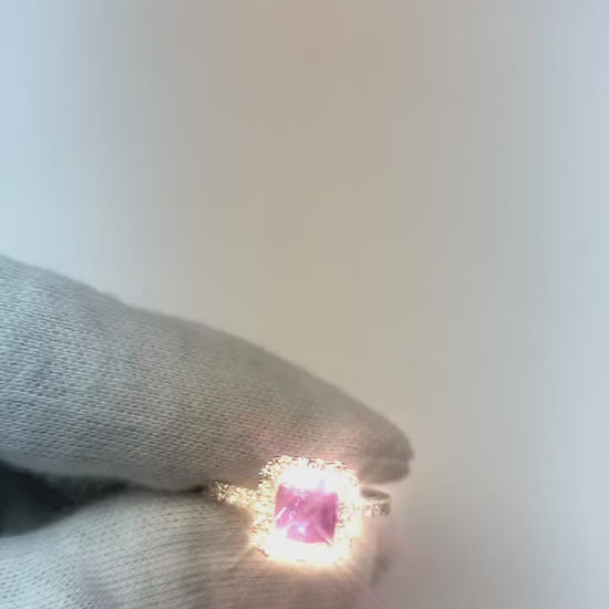 2 Ct Pink Sapphire And Natural Earth Mined Diamond Ring 14K White Gold