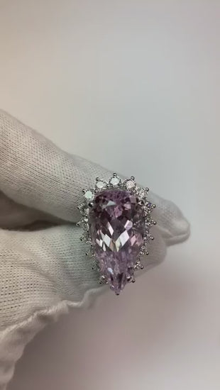 21.75 Carats Pear Kunzite With Round Natural Earth Mined Diamonds Ring White Gold 14K