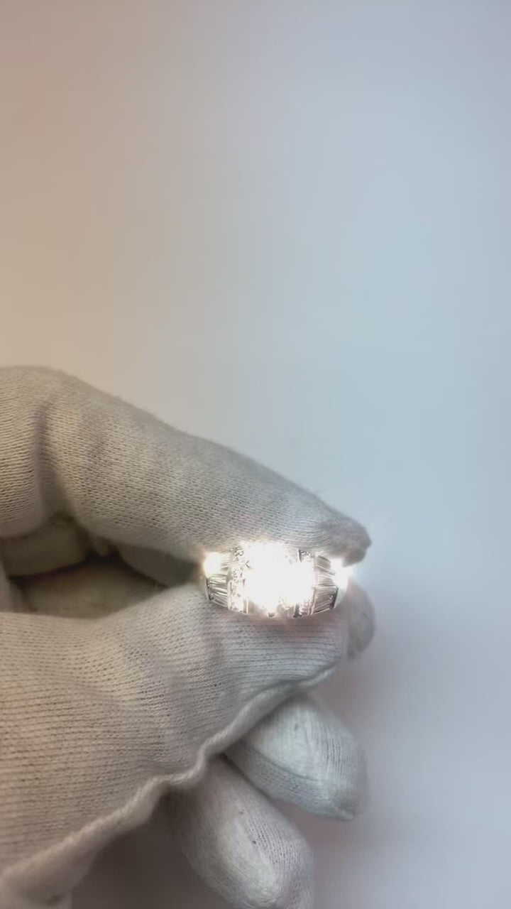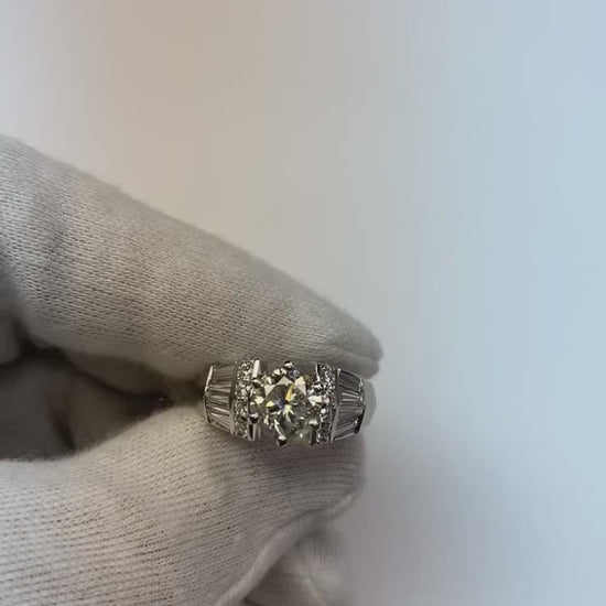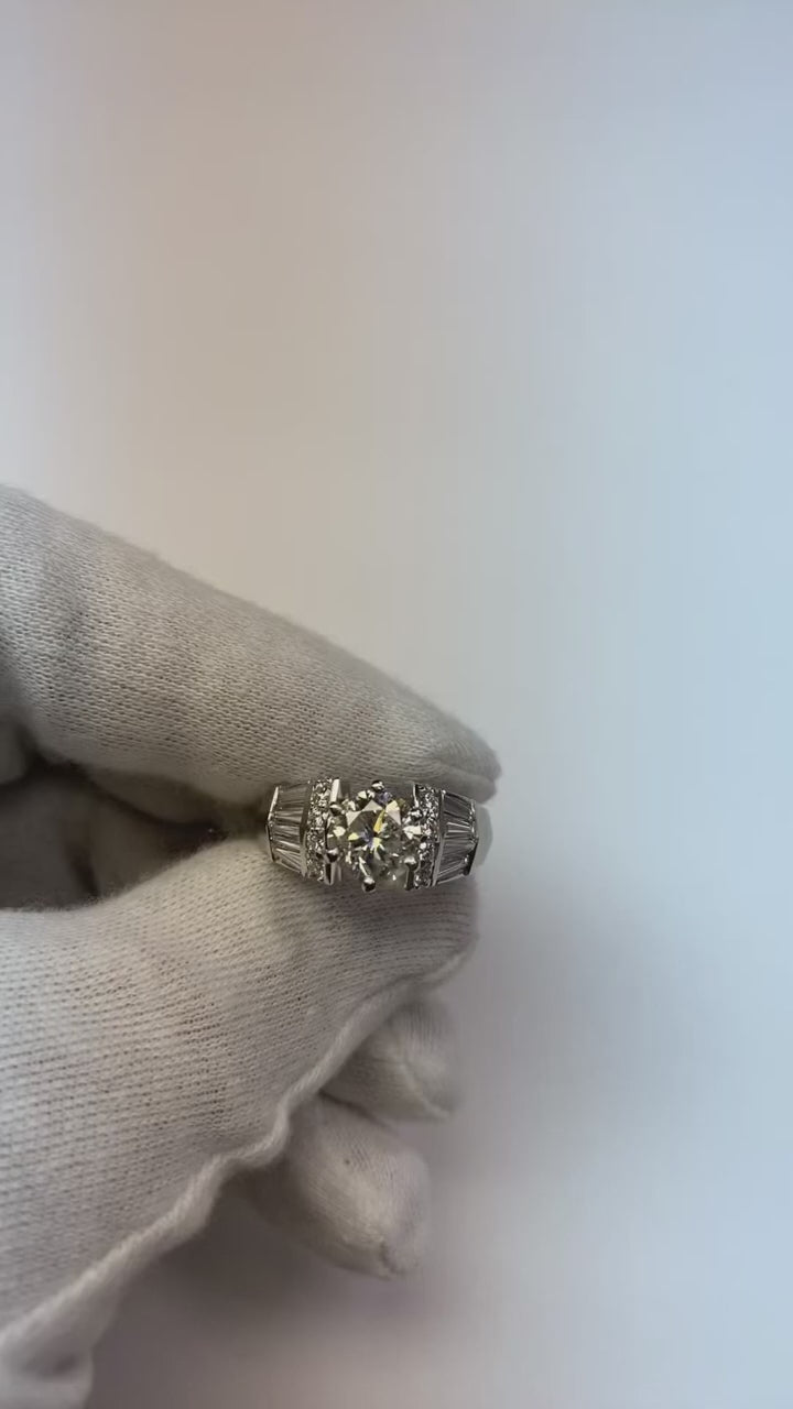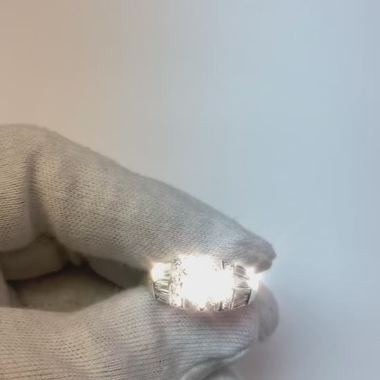 3.26 Carats Natural Earth Mined Diamond Round & Baguette Engagement Ring White Gold 14K
