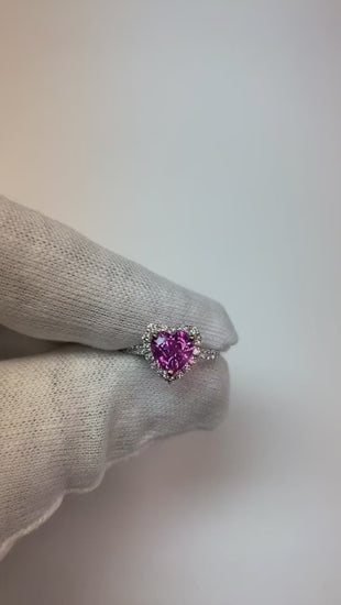 3.35 Carats Heart Pink Sapphire And Round Small Natural Earth Mined Diamonds Gemstone Ring