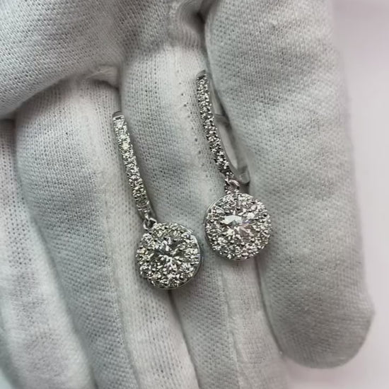 3.44 Carats Prong Set Natural Earth Mined Diamonds Lady Dangle Earrings White Gold 14K
