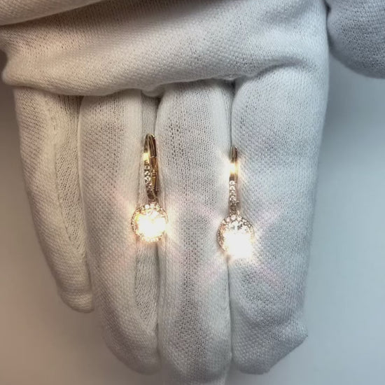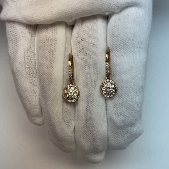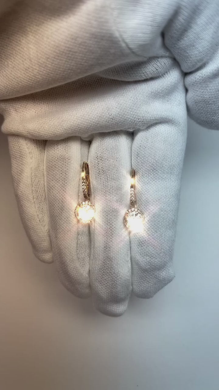 3.5 Carats Round G-Vs2 Natural Earth Mined Diamond Leverback Earring Pair White Gold 14K