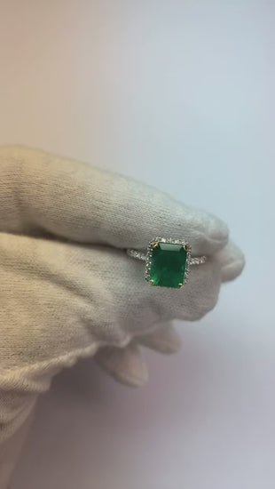 3.55 Ct Emerald Cut Green Emerald With Round Natural Earth Mined Diamond Wedding Ring