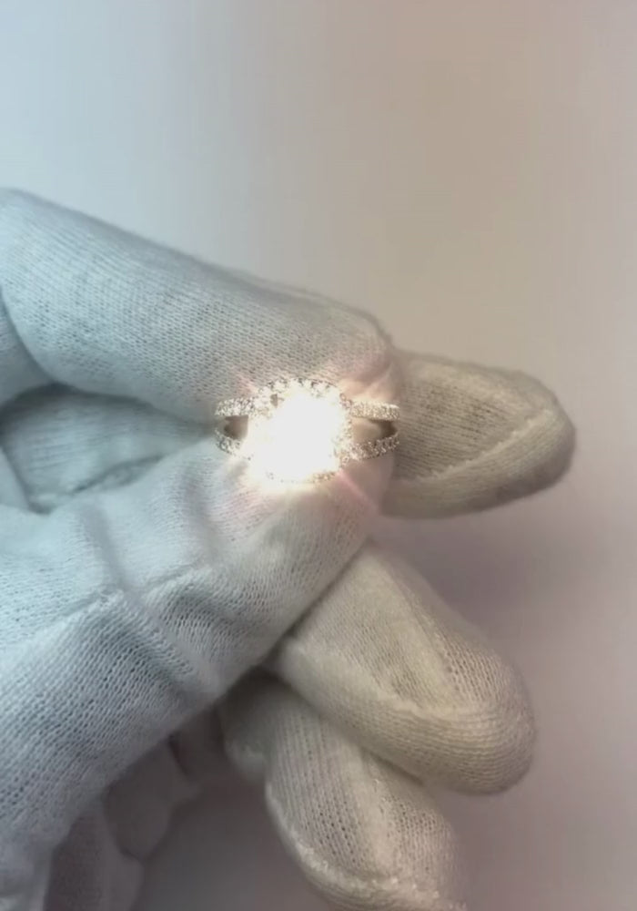 Stone Specifications: There is one cushion diamond in the center of approx. 2.50 carats & approx. 1.00 carats of smaller diamonds on the shank. Natural earth mined diamonds.