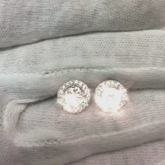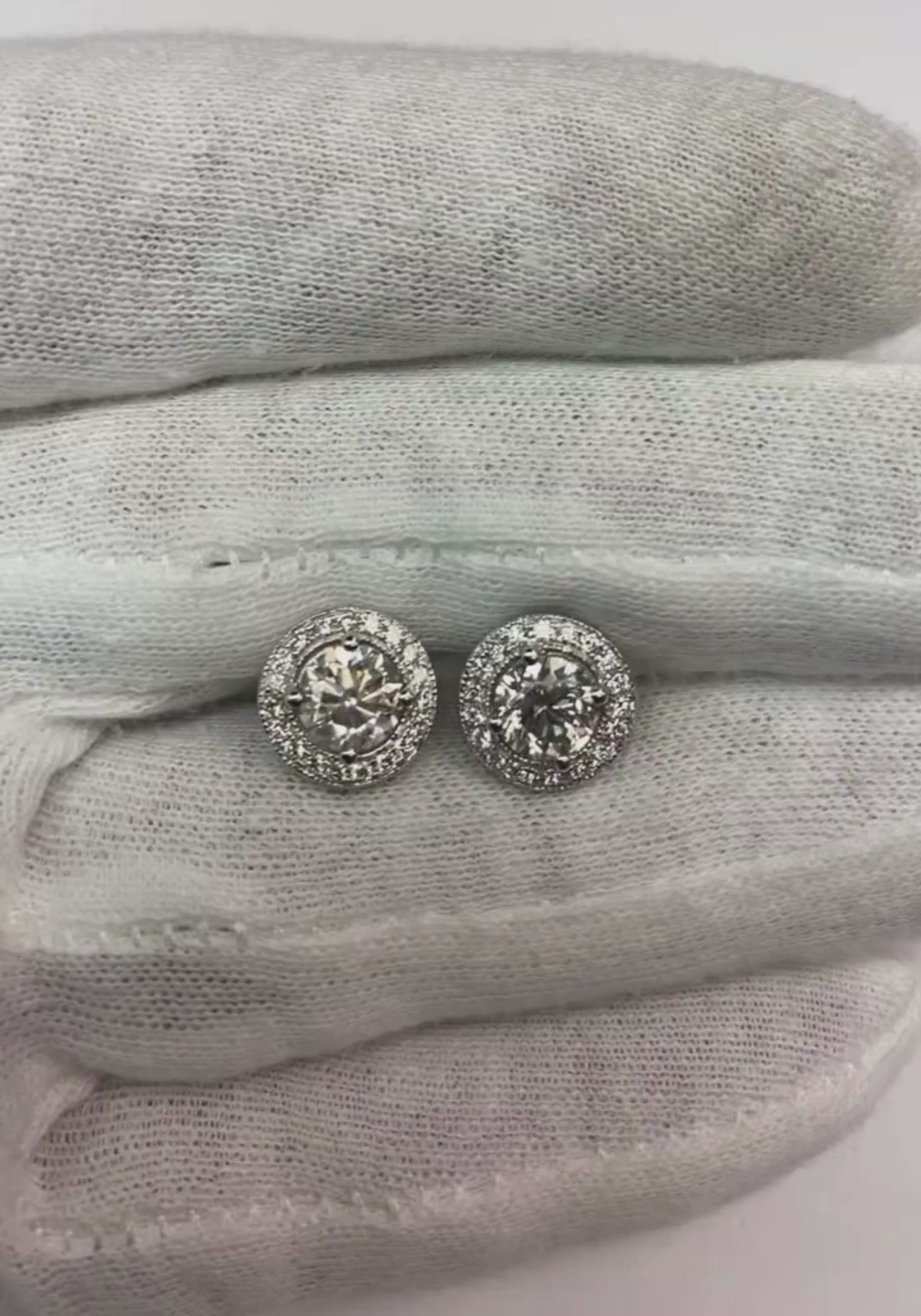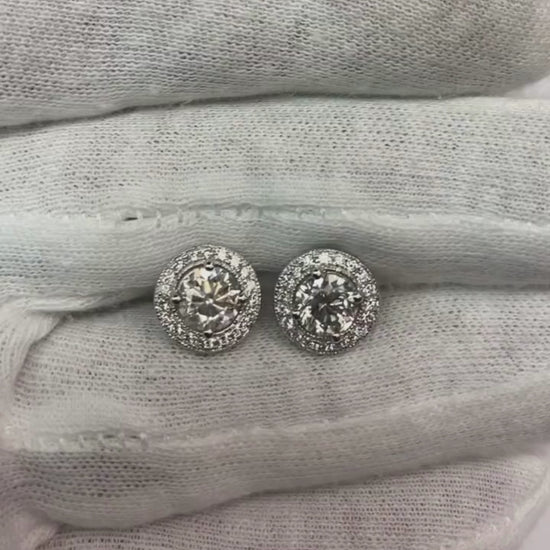 Sparkling Round Natural Earth Mined Diamond Halo Stud Earrings 3.50 Carat White Gold 14K