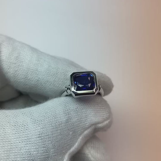Stone Details : There is one radiant cut sapphire approx. 3 carats (Approx. Size 9 x 5 mm). Natural earth mined stone.