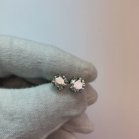 3 Carats Round Cut Real Natural Earth Mined Diamonds Women Stud Earring White Gold 14K