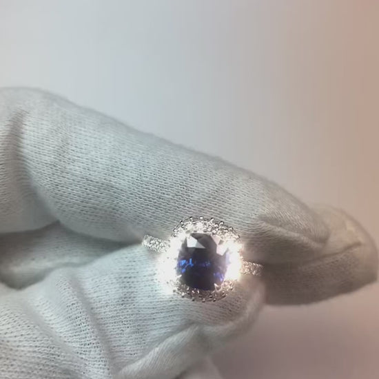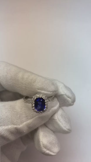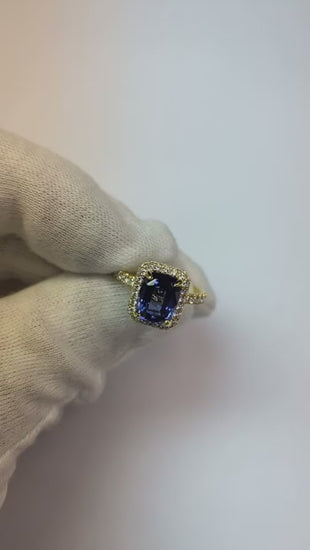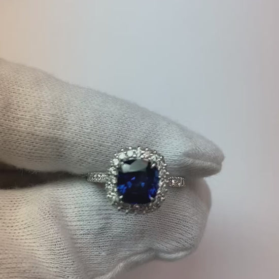 3 Ct Cushion Sri Lanka Blue Sapphire And Halo Natural Earth Mined Diamond Ring