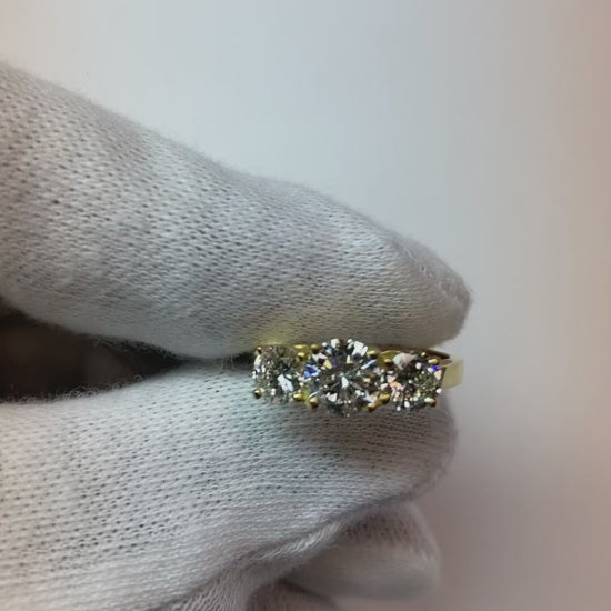 2 Carats Three Stone Engagement Natural Earth Mined Diamond Ring 4 Prong Set White Gold 14K
