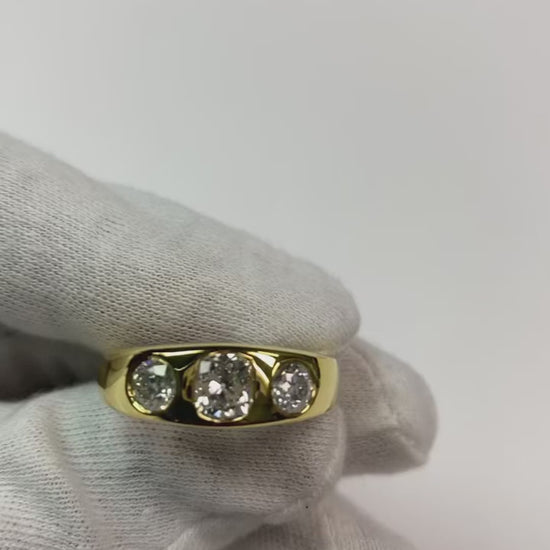 3 Stone Gypsy Natural Earth Mined Diamond Wedding Band 2 Carats Old Miner Yellow Gold 14K
