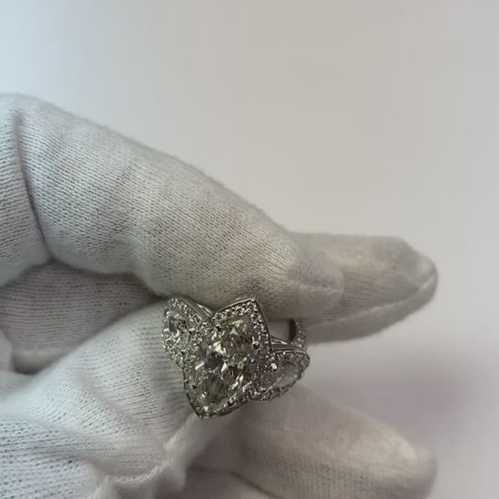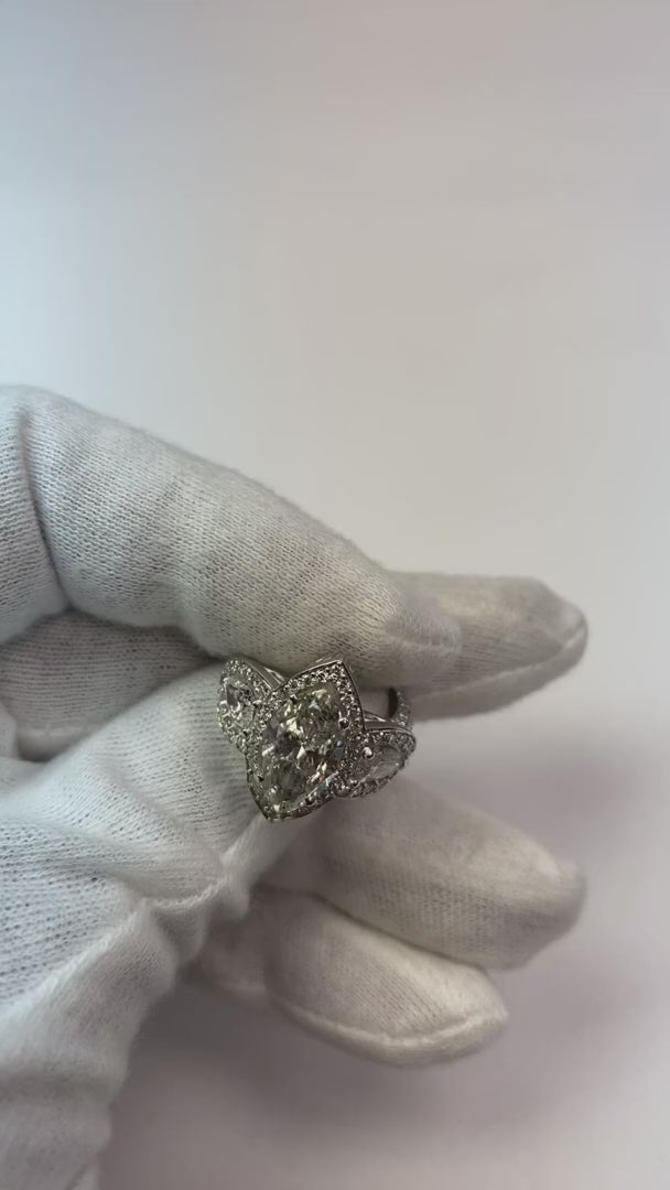 3 Stone Halo Ring With Pear and Marquise Natural Earth Mined Diamonds 7.45 Carats