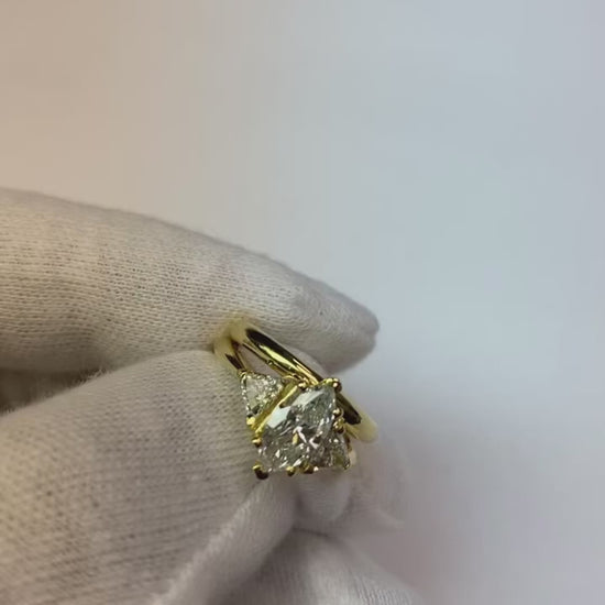 3 Stone Marquise Earth Mined Diamond Trillion Ring & Matching Band 3 Carats