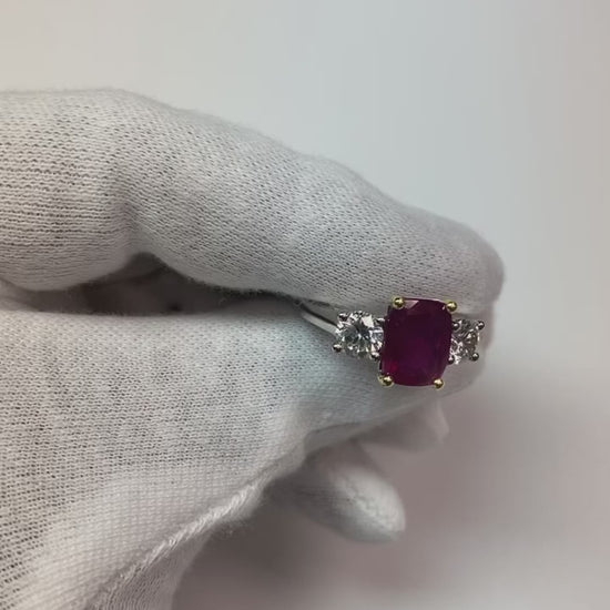 Stone Specifications: There is one ruby in the center of approx. 3.00 carats and approx. 1.50 carats of round diamonds on the side. Natural earth-mined stones.