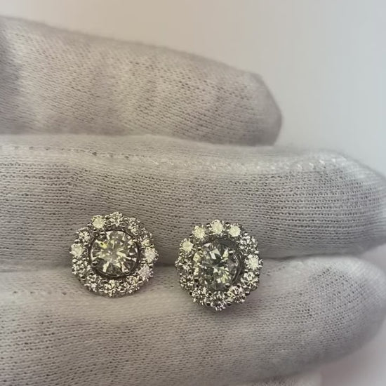 4 Carats Sparkling Brilliant Cut Natural Earth Mined Diamonds Ladies Studs Halo Earrings
