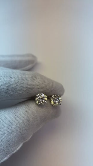 4.50 Carats Prong Set Round Solitaire Natural Earth Mined Diamond Stud Earring White Gold