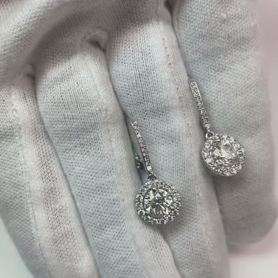 4.50 Carats Natural Earth Mined Diamonds Ladies Dangle Earrings White Gold 14K