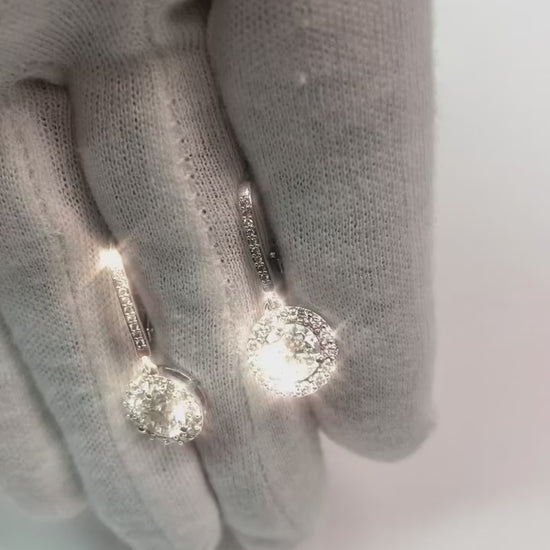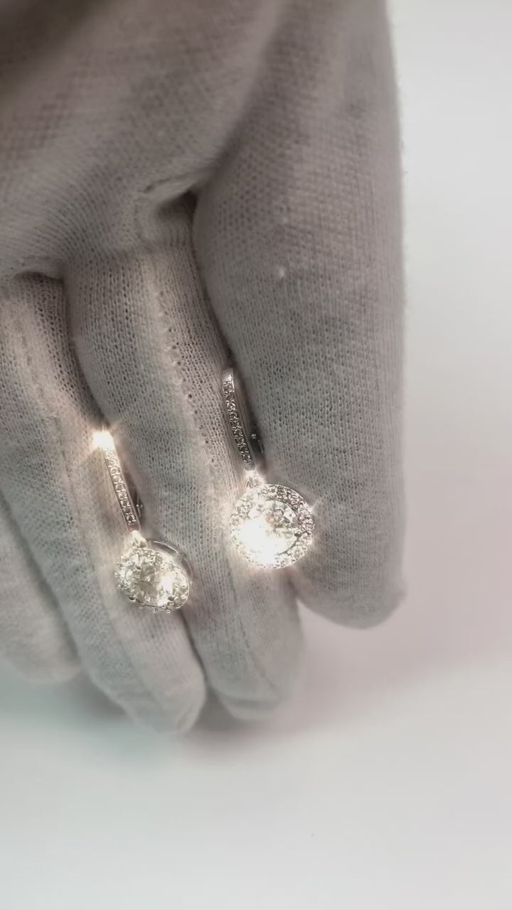 Stone Details :There is one diamond approx. 1.50 carats and approx. 0.75 carats of smaller round diamonds in each earring. Natural earth mined diamonds.